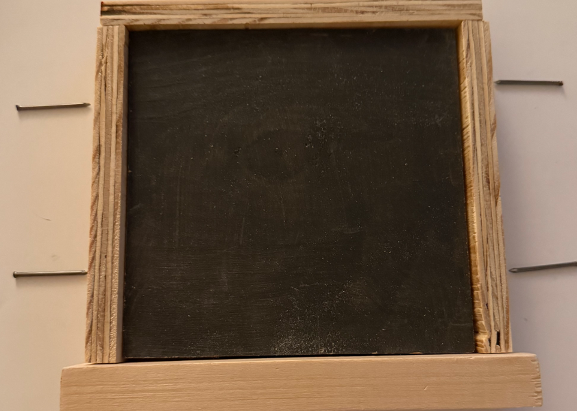 Chalkboard Woodworkers will learn to safely use a hammer while assembling a personal chalkboard using pre-cut wood, chalkboard contact paper, and nails, creating a canvas for creativity.