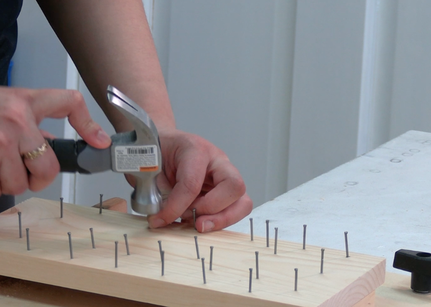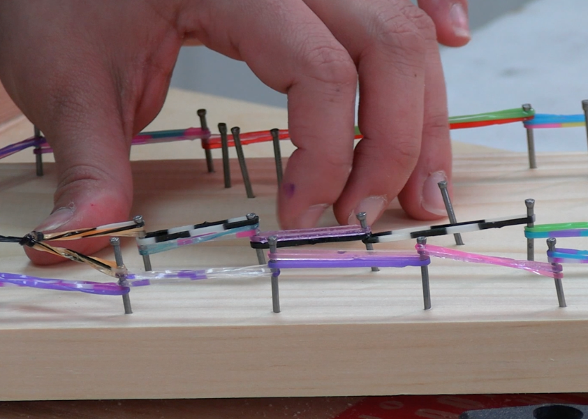 Mini Pinball Create your own pinball machine with wood, nails, rainbow loom bands, popsicle sticks, and a ball.